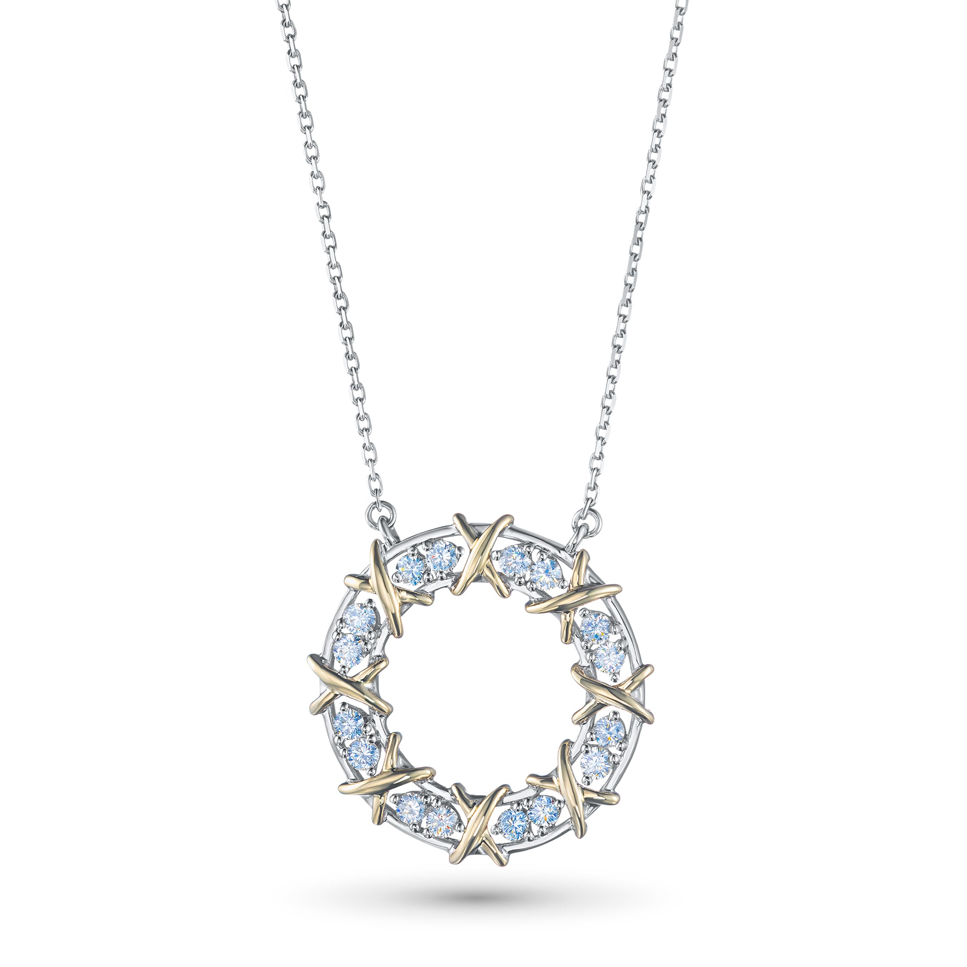 14K White-yellow Gold Necklace with Lab-Created Diamonds